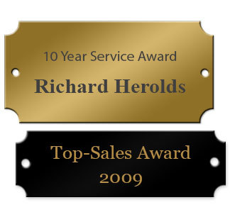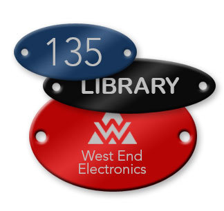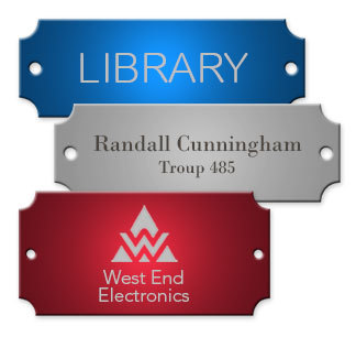 Custom-engraved aluminum tags are affordable and durable—choose standard aluminum for indoor use or anodized aluminum for indoor or outdoor.