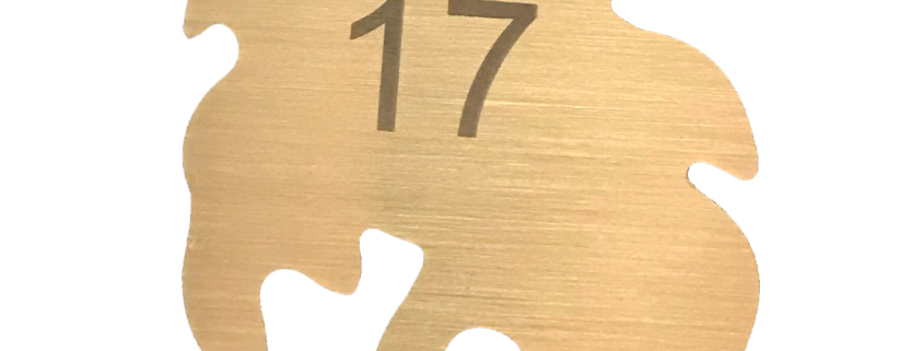 This key fab is made of .040” thick brass, and is cut using pin-point laser engraving, which creates a clean, detailed, darkened image to meet the specifications of The Willows. The fab itself is designed to match the logo of the hotel, and has room numbers engraved on each of the brass fobs.