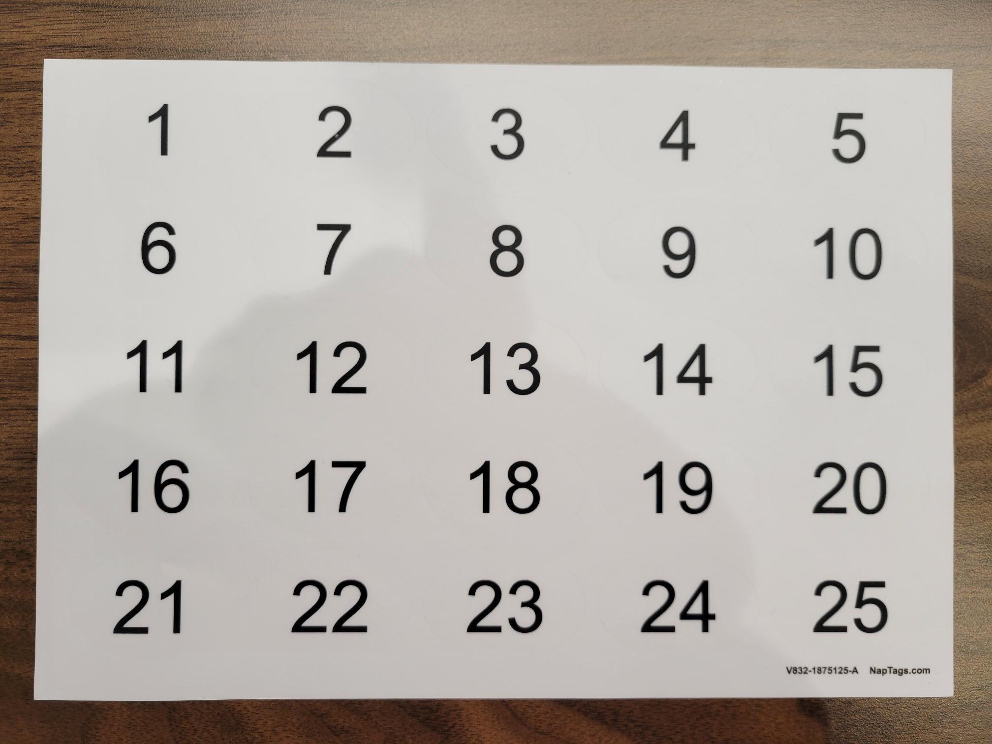 - Colors: White with black numbers